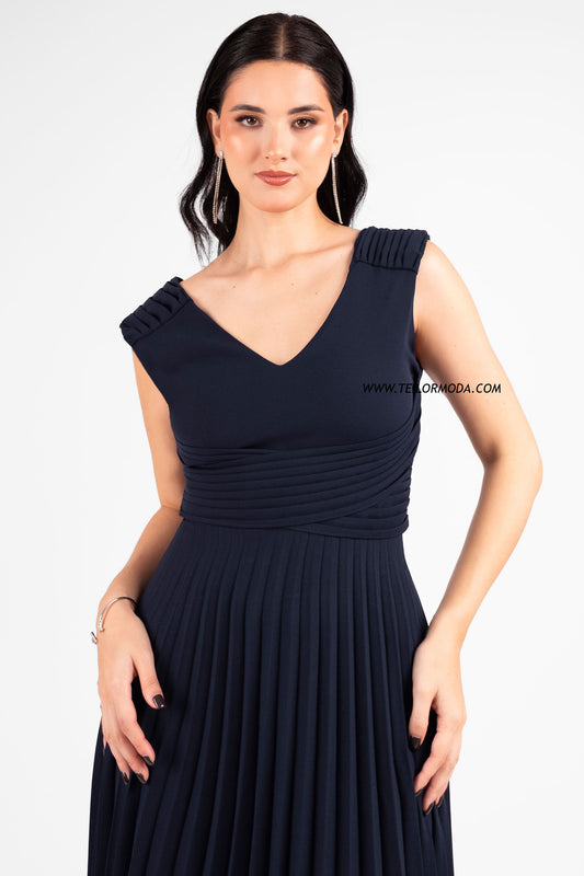 VESTIDO COCTEL PLISADO CASANDRA AZUL