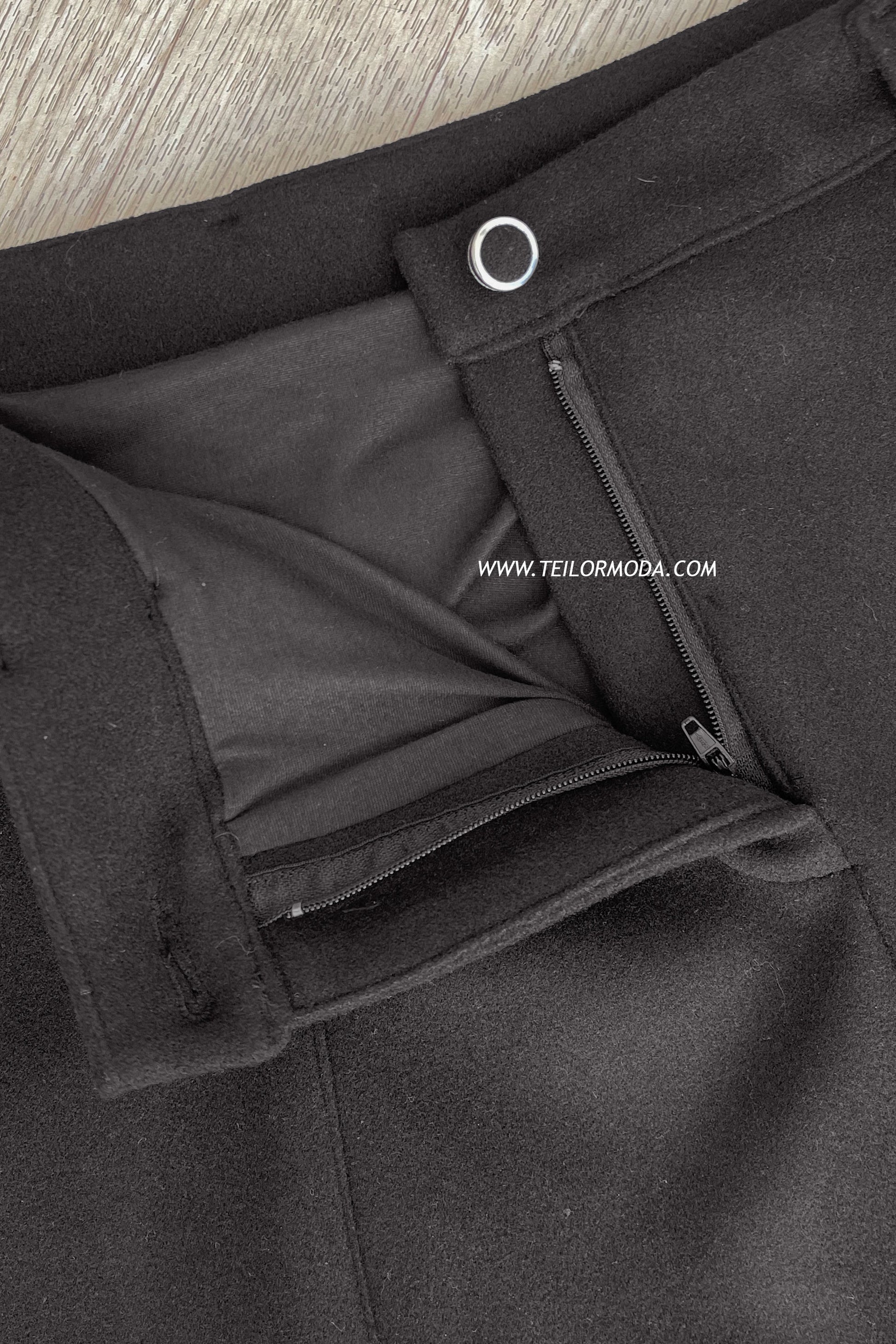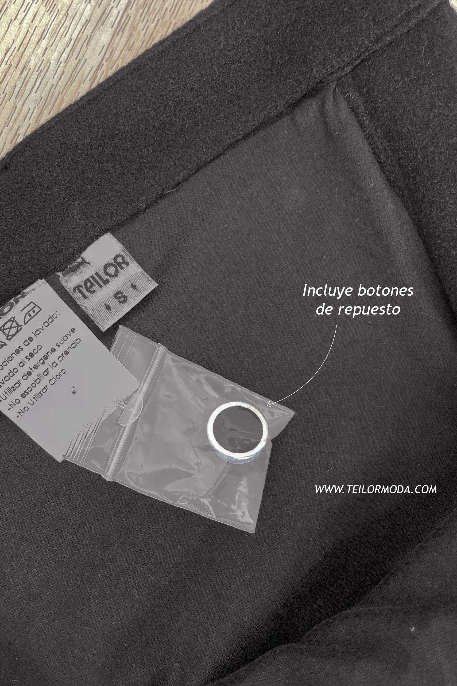 - Confeccionado con tela de paño, es de textura gruesa, perchado y semi strech que se adapta a la silueta, lo cual convierte a la prenda perfecta para climas fríos.