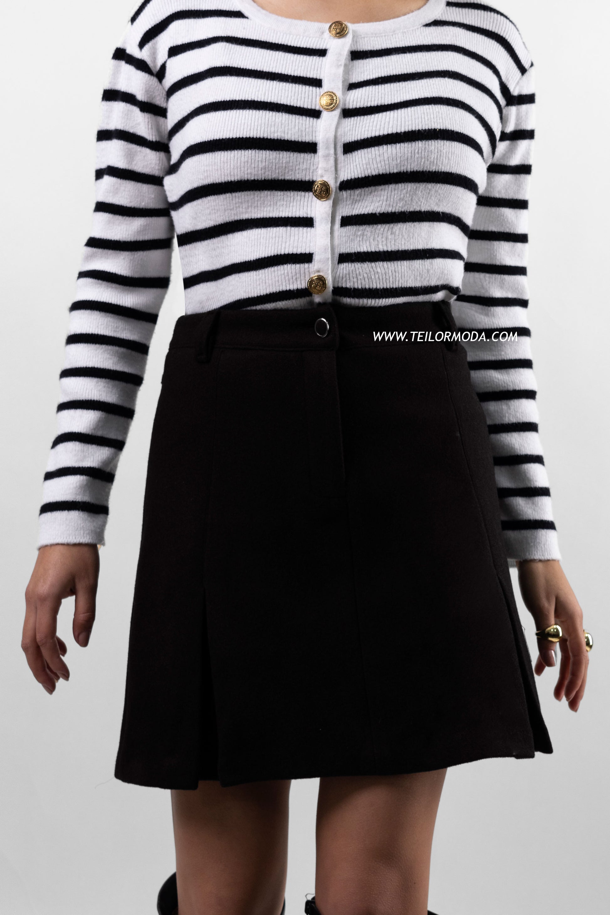 La falda HELEN es una mini falda con tableros invertidos en linea "A" de estilo juvenil, sensual y sofisticado que se amolda a tu silueta y adopta el estilo de tu elección, ya sea casual, sport y formal.