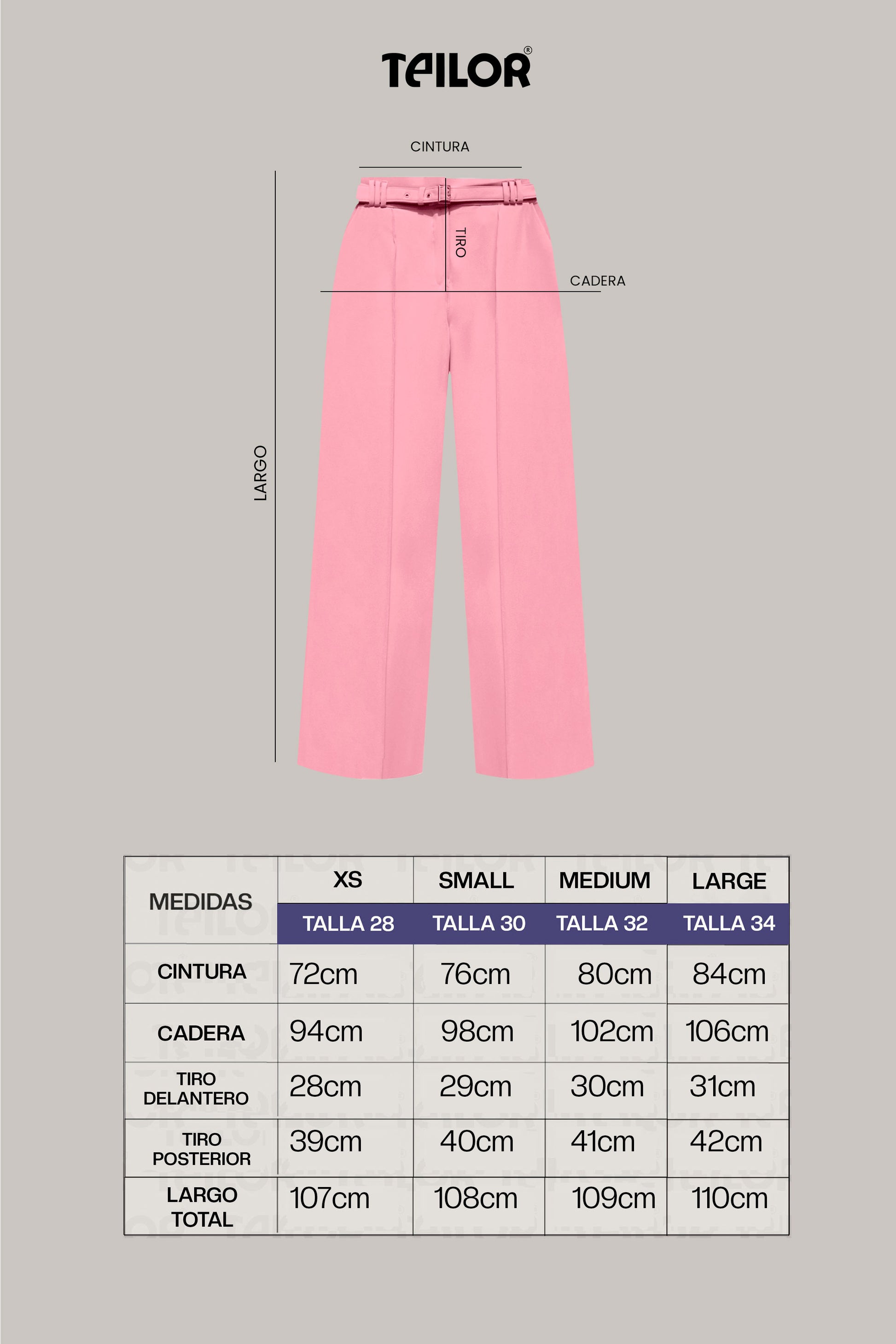 - Es de corte palazzo , con un detalle sutil en la pierna, lo cual da la ilusión de unas piernas más largas y estilizadas.