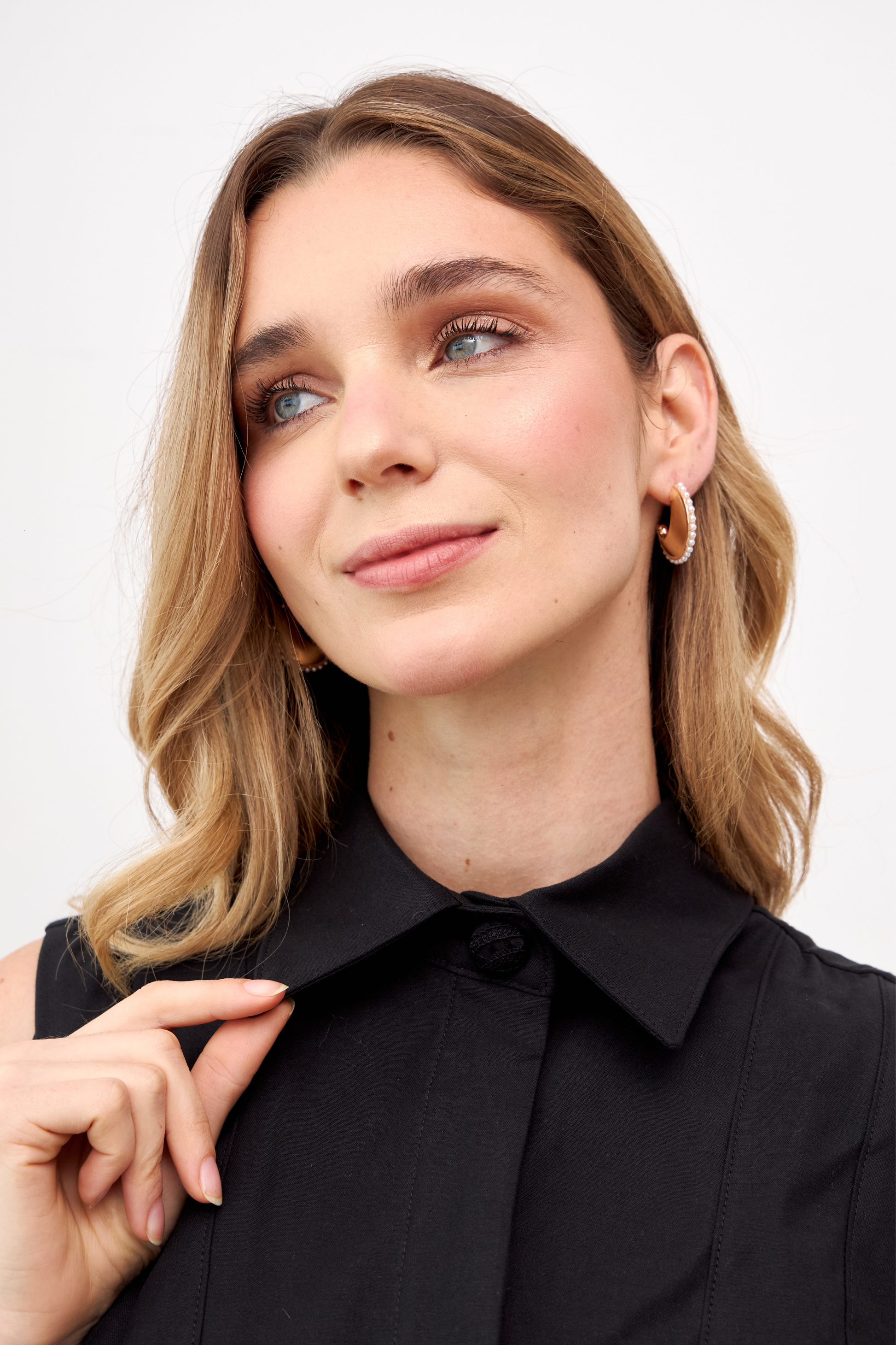 - Cuenta con cuello tipo camisa y botones ocultos, además de un botón decorativo con encaje, un detalle sutil.