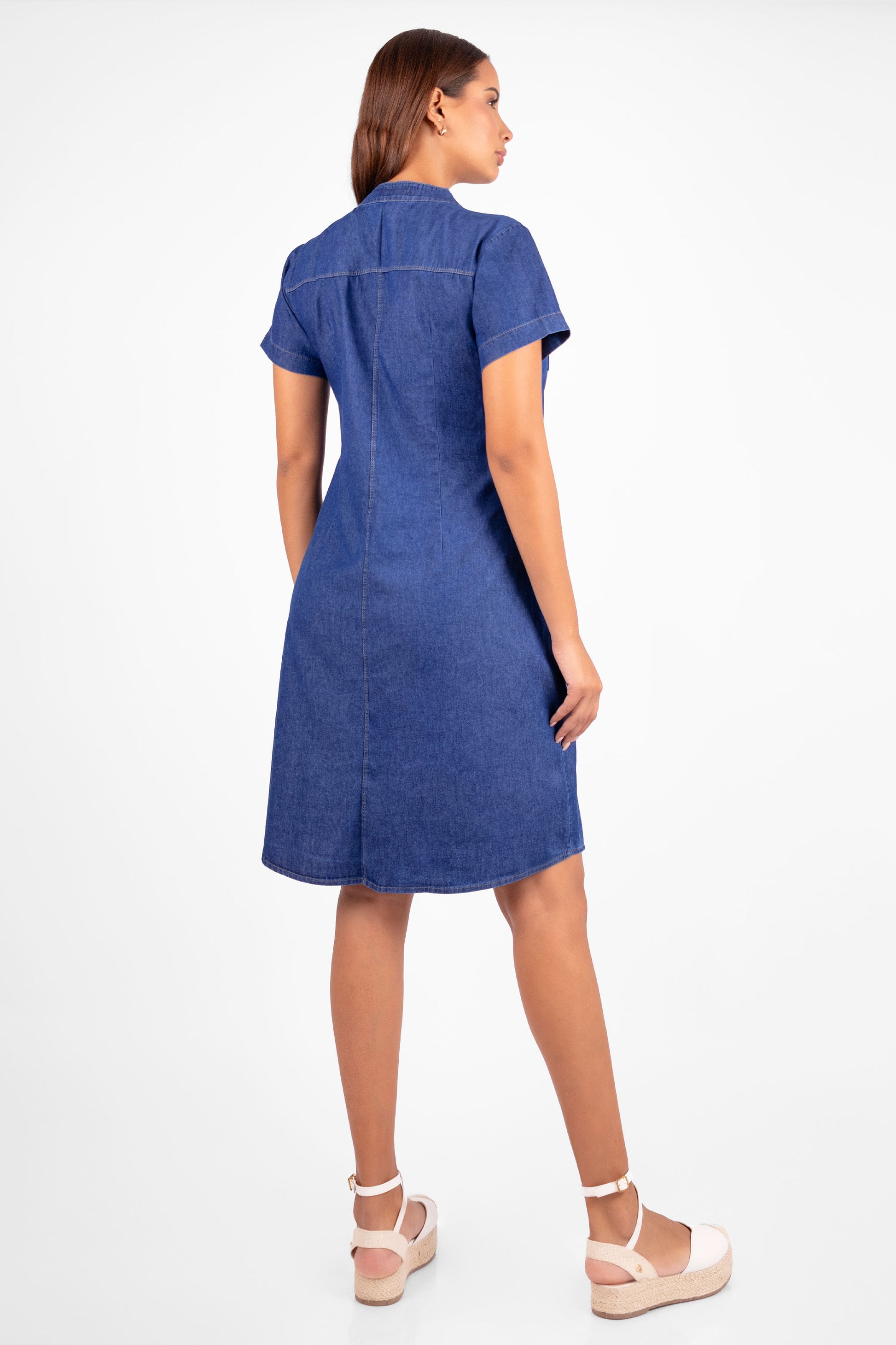 - El vestido Elianna está confeccionado Denim texil lavado, una tela fresca y resistente, perfecto para el Verano.