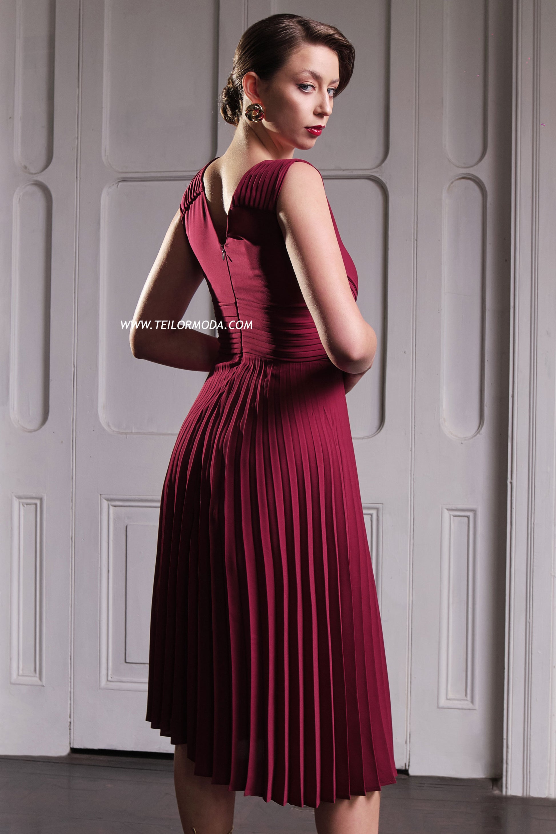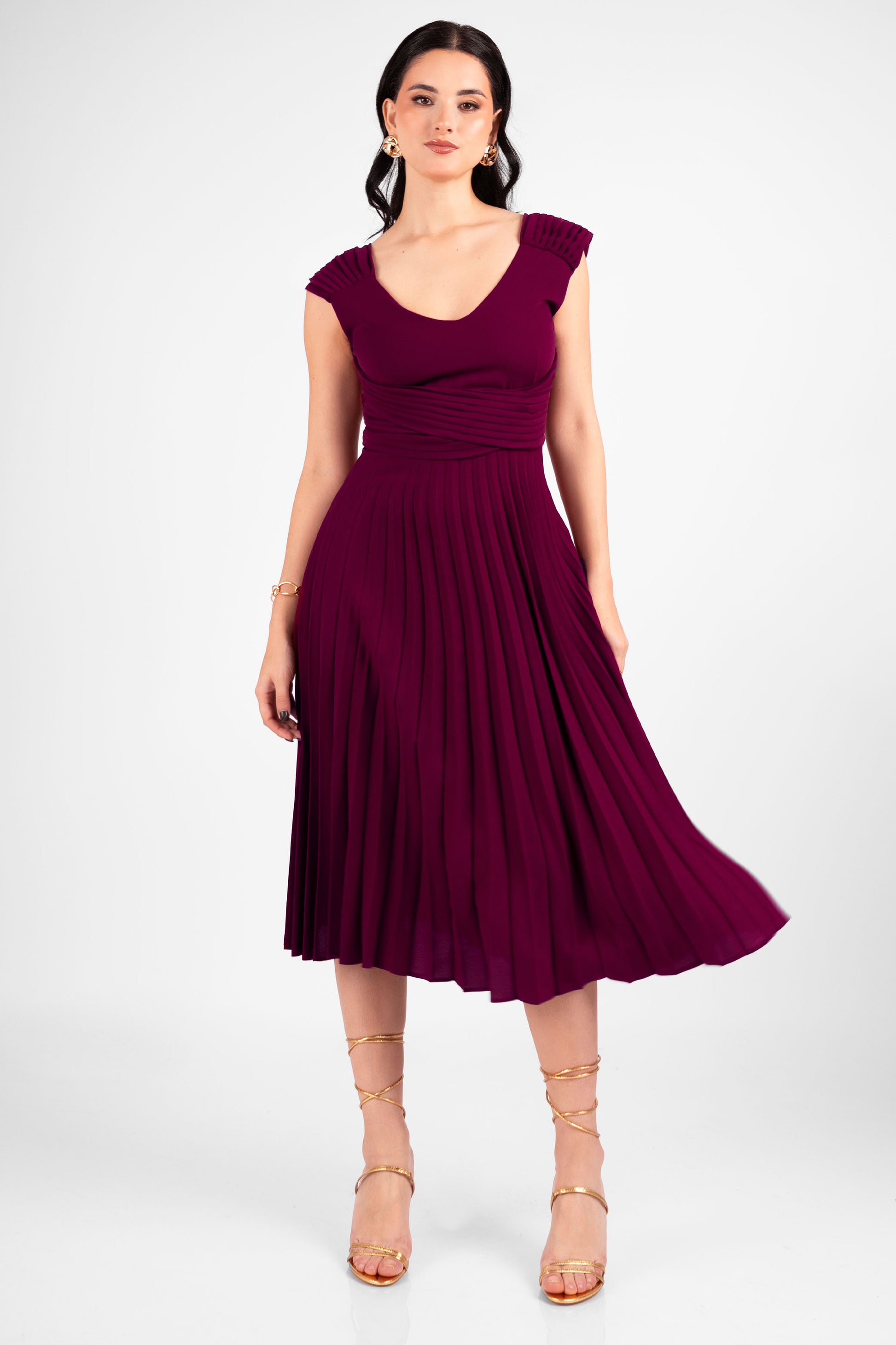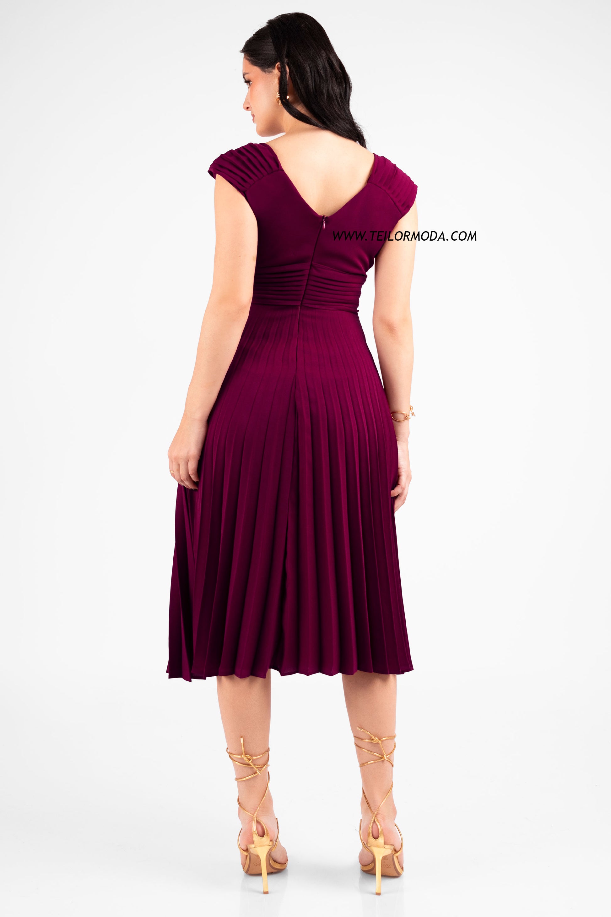 VESTIDO COCTEL PLISADO CASANDRA VINO