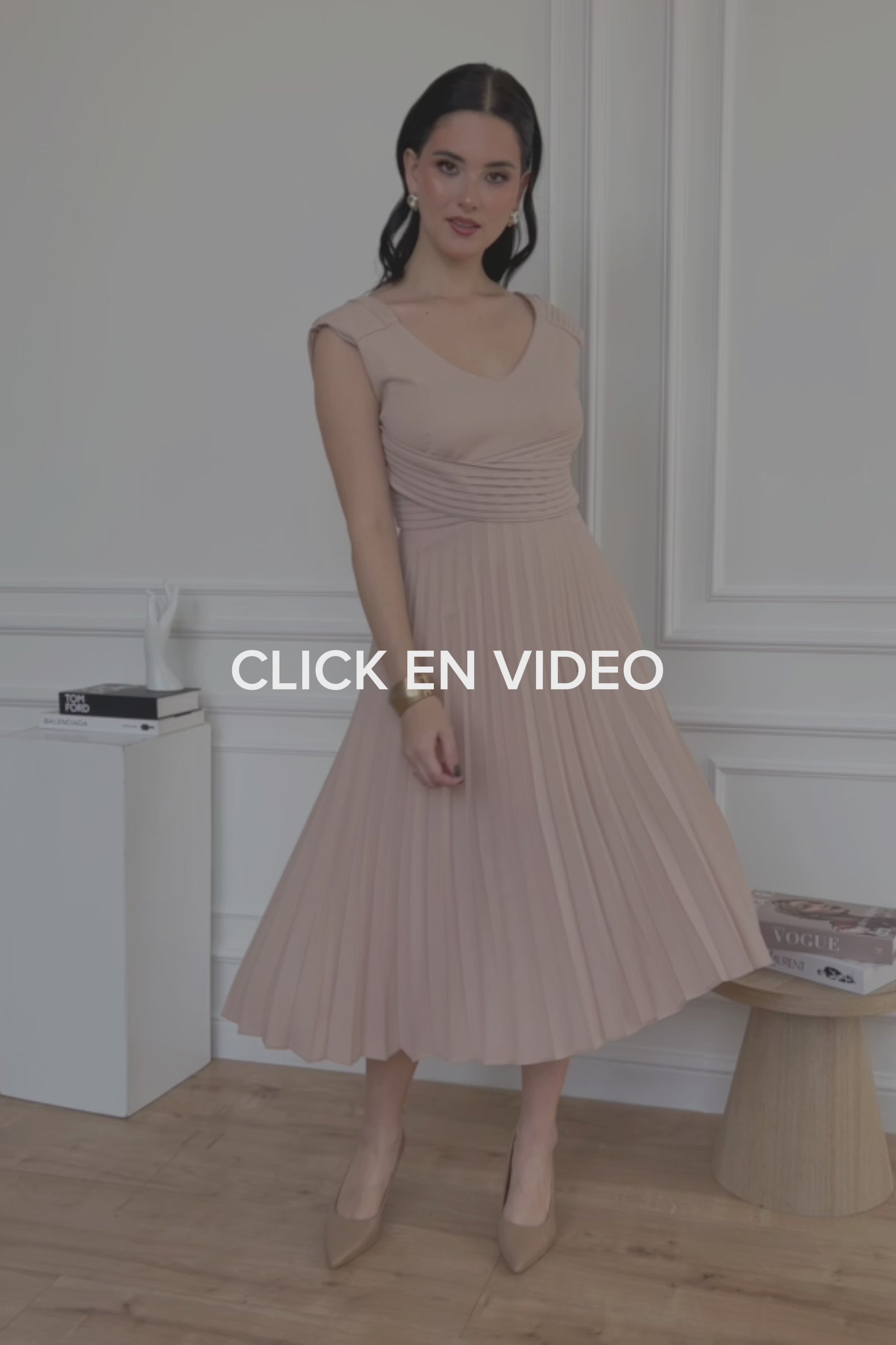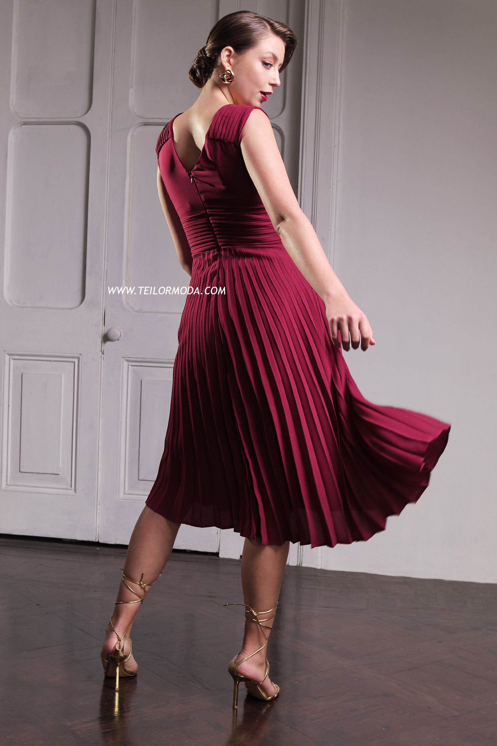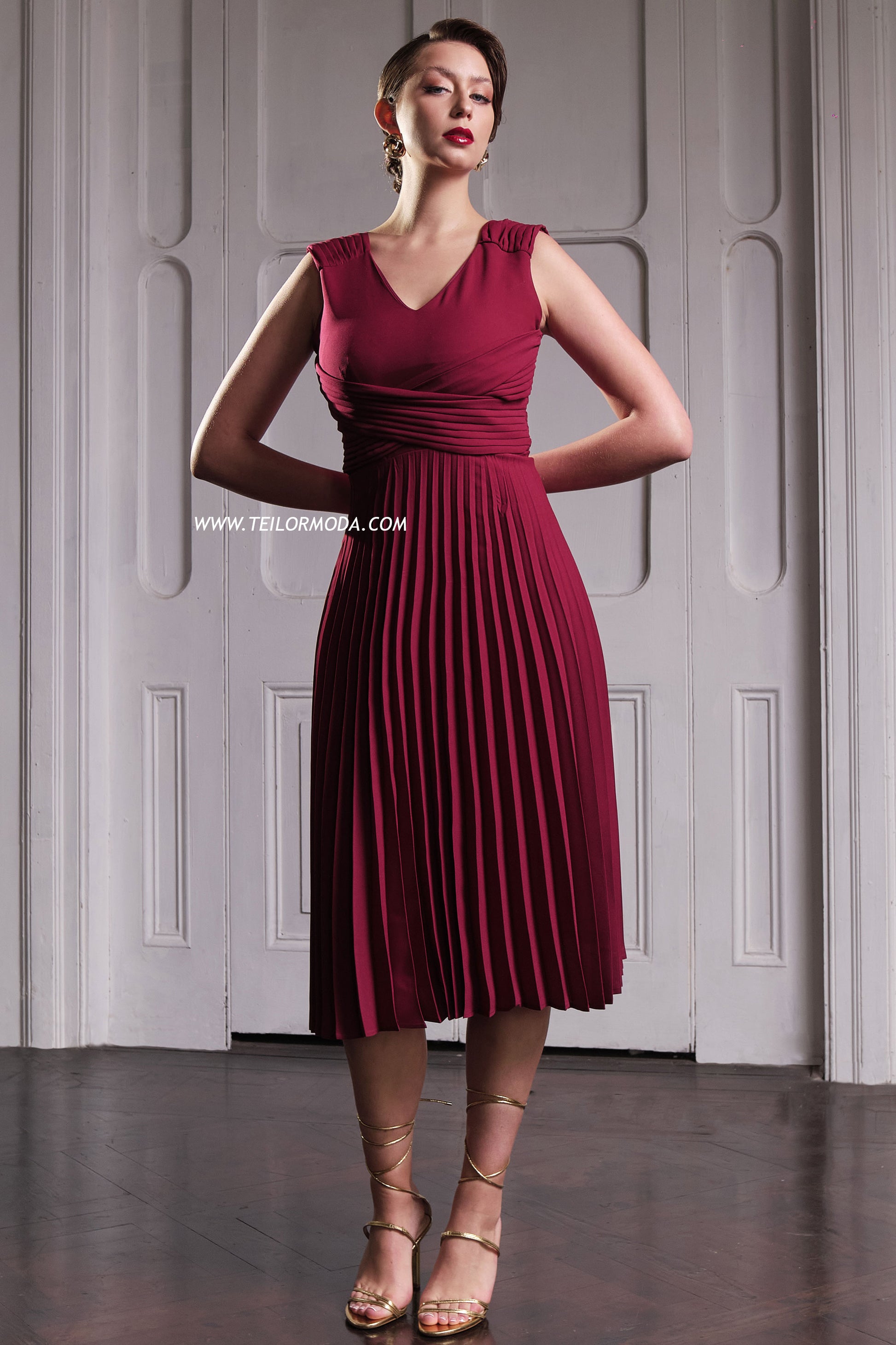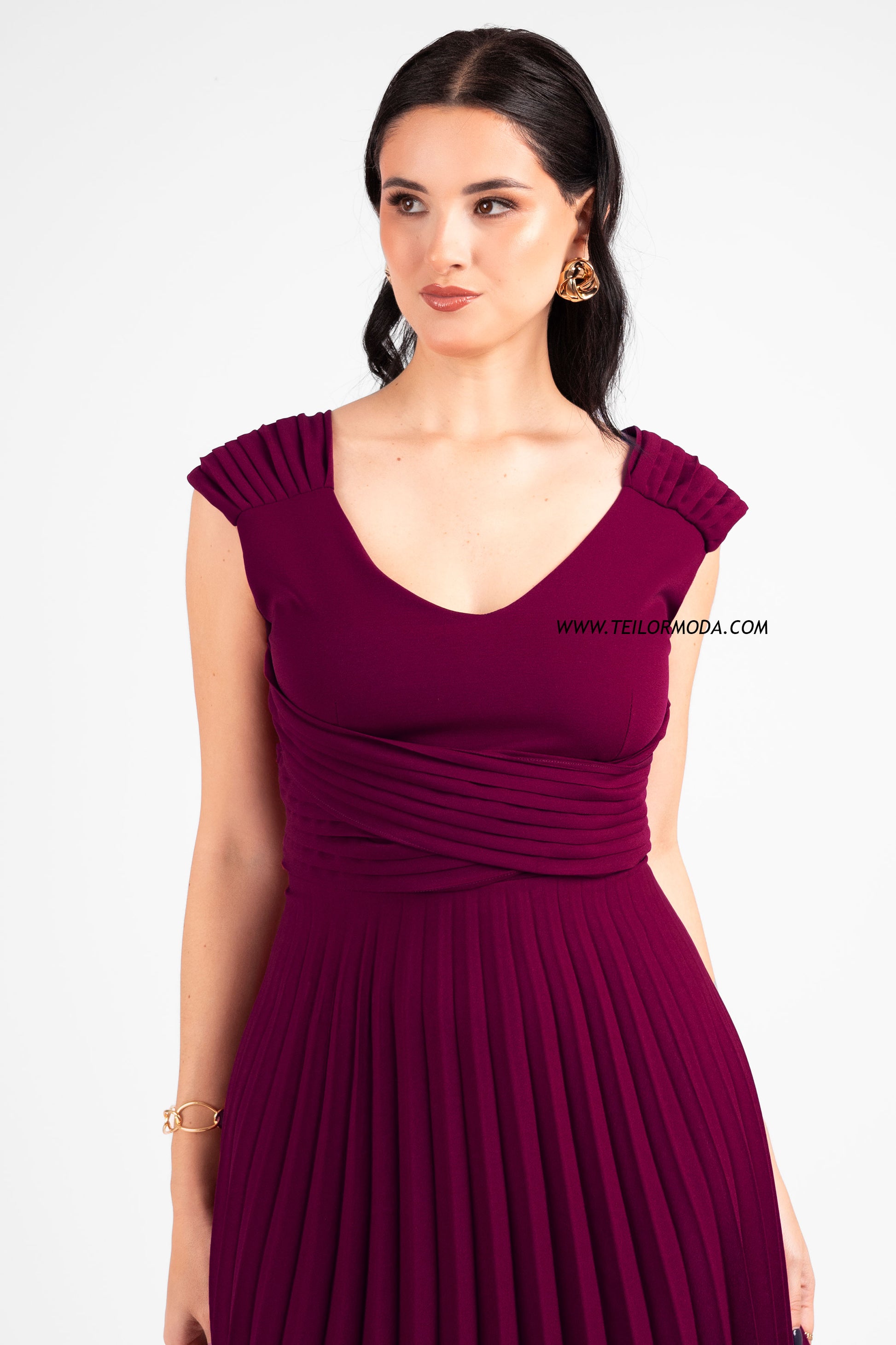 VESTIDO COCTEL PLISADO CASANDRA VINO