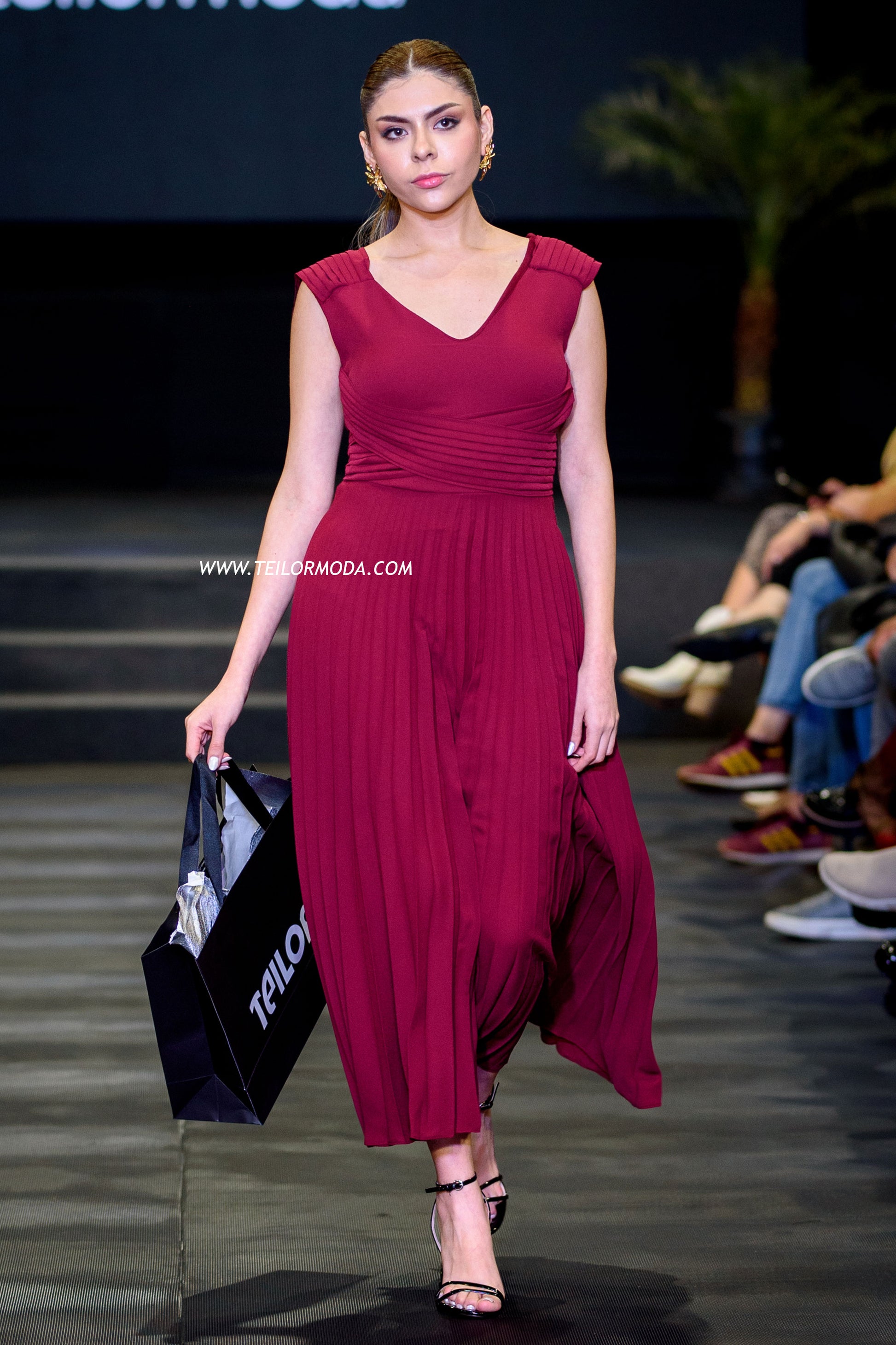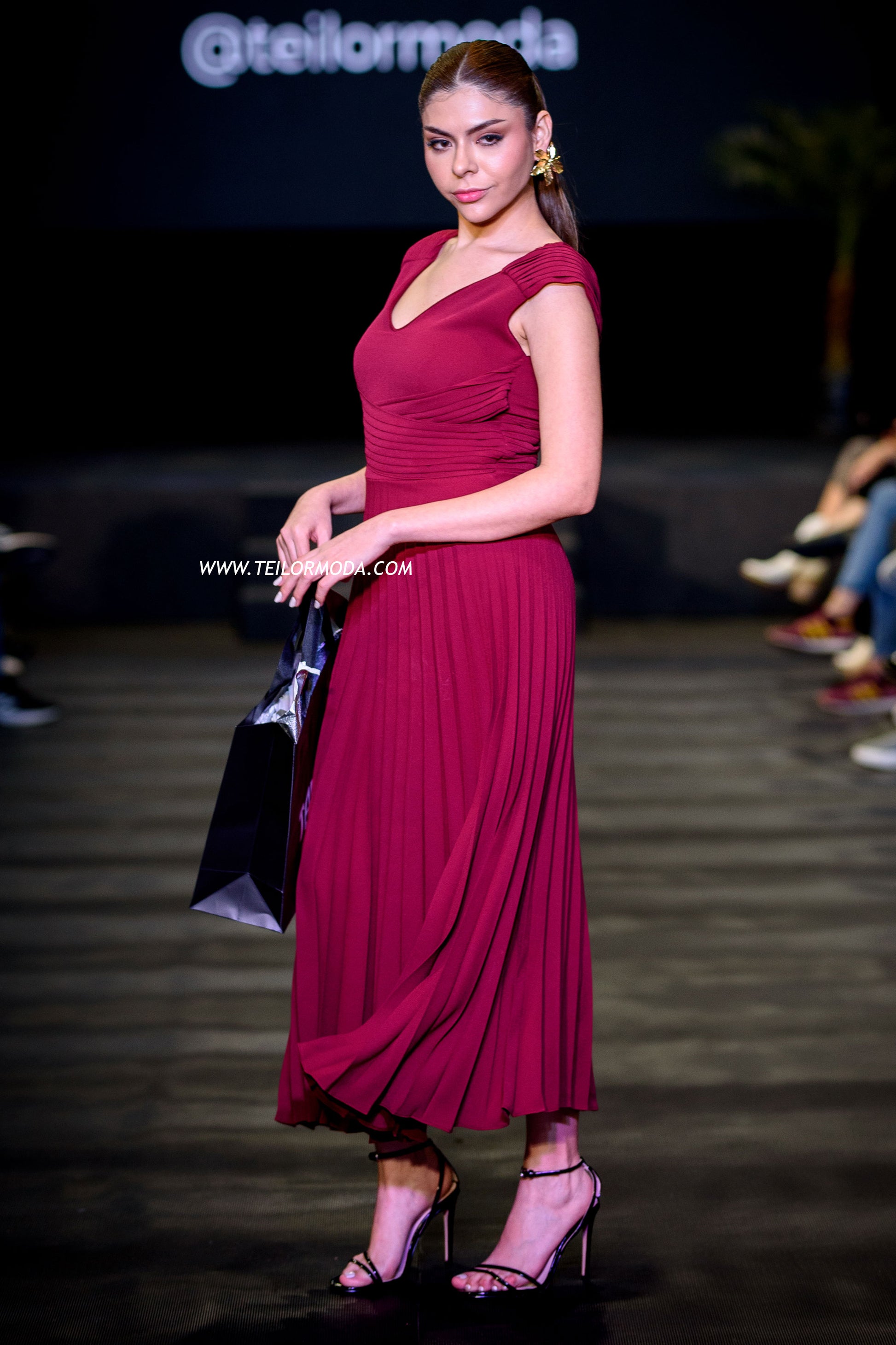 - Mientras que la falda midi plisada ofrece un movimiento fluido que resalta la elegancia en cada paso.