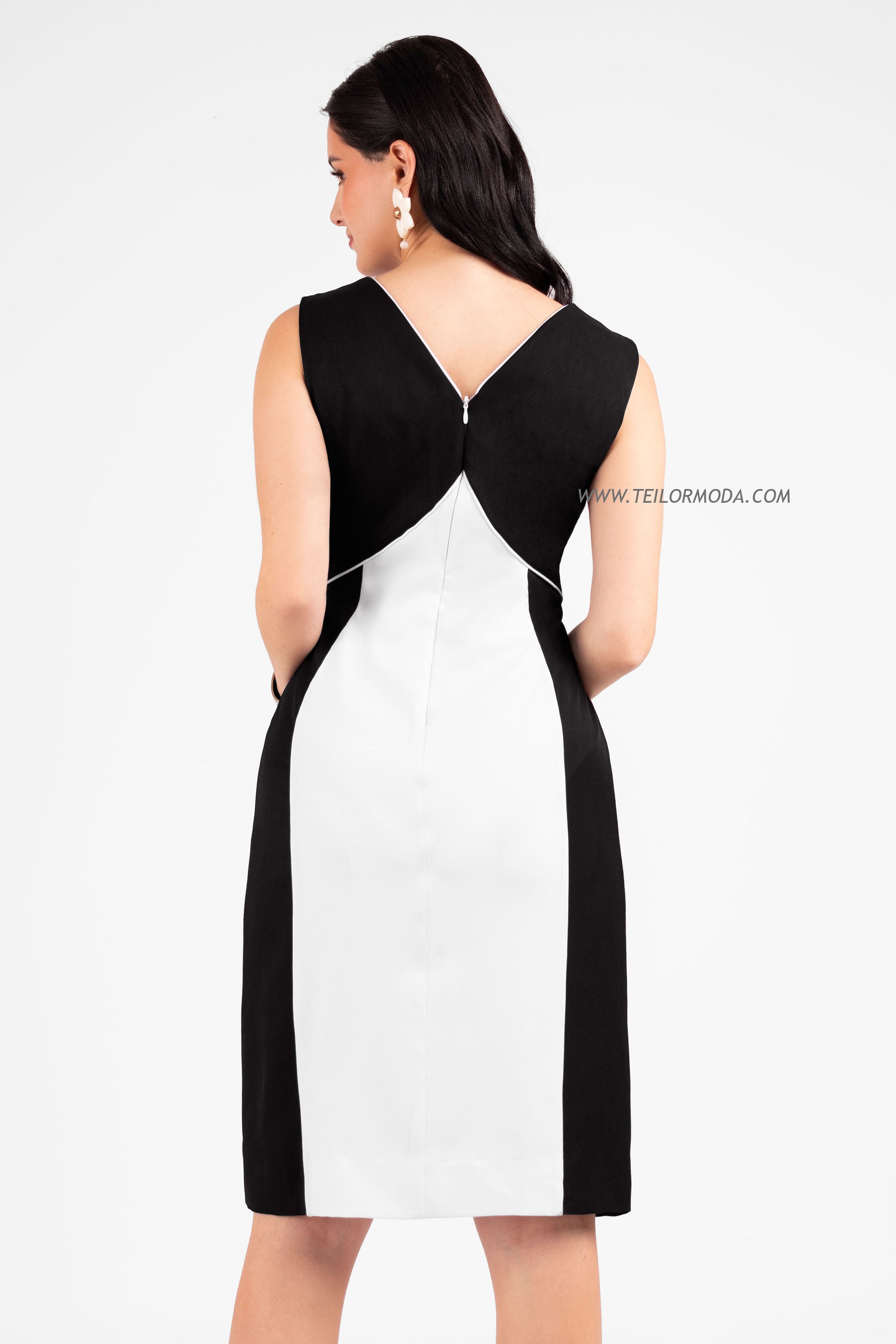 - Con un diseño bicolor en blanco y negro, estiliza la figura gracias a sus paneles contrastantes que crean un efecto visual favorecedor.